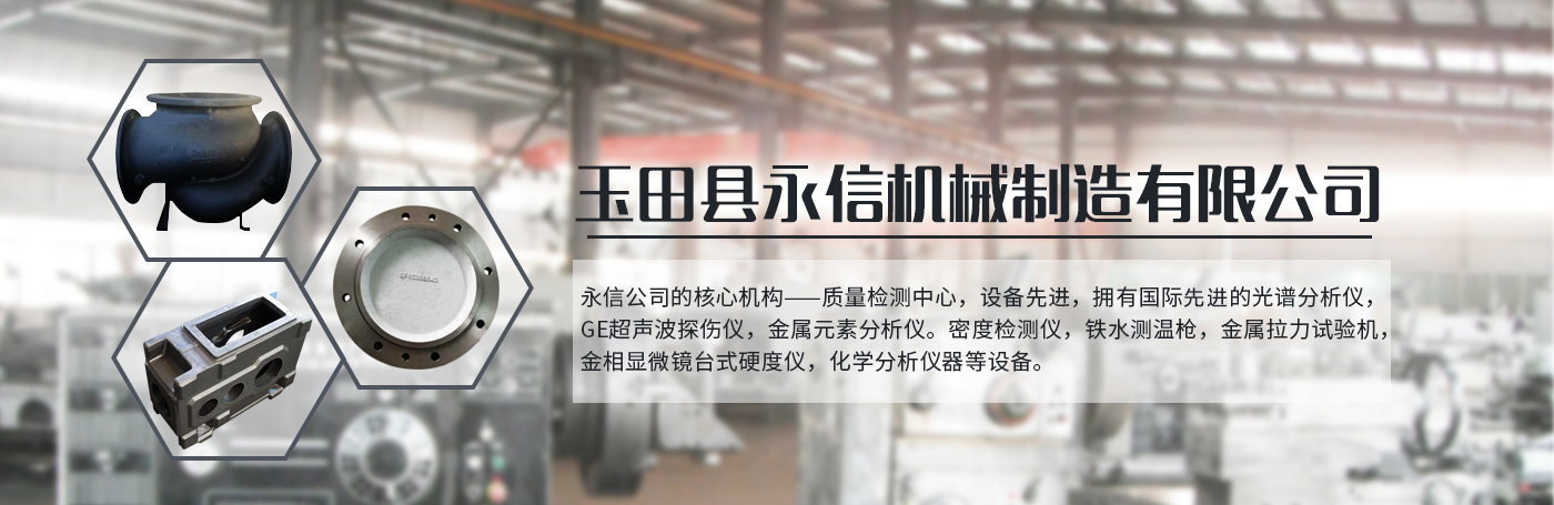 玉田縣永信機械制造有限公司總公司成立于2009年,注冊資金5000萬元人民幣,占地35畝,具備年產(chǎn)2萬噸減速機、閥體、電機座鑄件等的生產(chǎn)能力,是國家工信部批準的鑄造準入企業(yè)。公司是從事工程機械鑄件,機床鑄件生產(chǎn)和銷售的泵閥鑄件廠家,配備全自動生產(chǎn)設(shè)備和環(huán)保設(shè)施,加快綠色發(fā)展。公司以生產(chǎn)灰鑄鐵、球墨鑄鐵鑄、耐磨鑄鐵件、工程機械鑄件、機床鑄件為主。鑄造車間擁有自動和手工兩條造型生產(chǎn)線及液壓控制的覆膜砂制芯系統(tǒng)。鑄造過程含造型、電爐熔煉澆鑄、抖箱、噴丸拋光、打磨等工序。樹脂砂、覆膜砂、粘土砂造型生產(chǎn)工藝成熟穩(wěn)固,年產(chǎn)量超過2萬噸,其中,樹脂砂自動造型生產(chǎn)線,以批量大、標準高、誤差小的特點深得用戶信賴。樹脂砂造型生產(chǎn)模式以滿足異型和私人定制為特色,成為企業(yè)成長的重要組成部分。機械加工車間擁有3套加工中心、15臺數(shù)控車床及其它加工設(shè)備。永信公司的核心機構(gòu)——質(zhì)量檢測中心,擁有光譜分析儀、GE超聲波探傷儀,金屬元素分析儀,密度測試儀,鐵水測溫槍、金屬拉力實驗機、金相顯微鏡、臺式硬度儀
